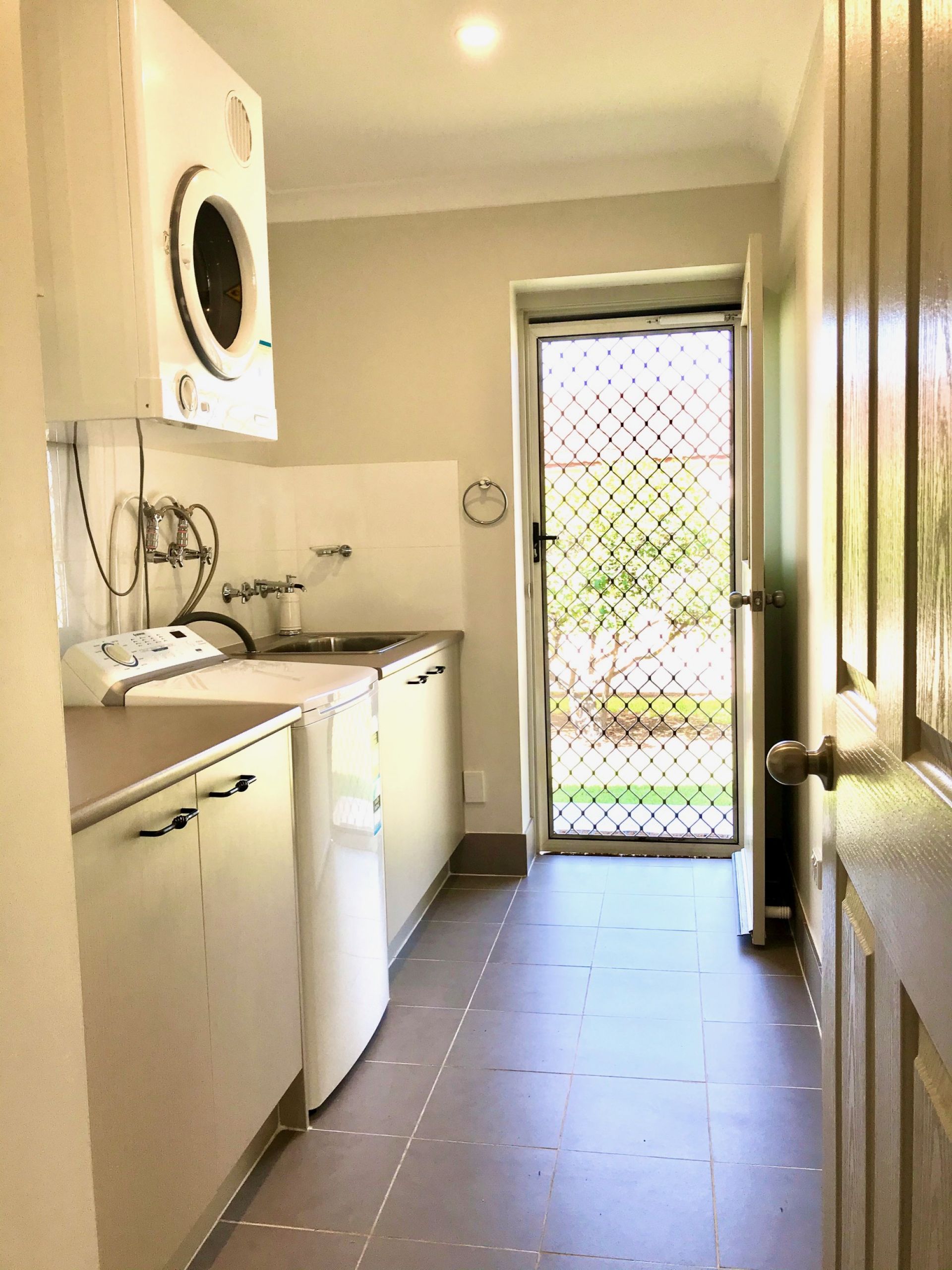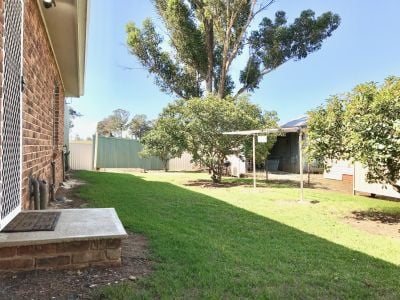 The home also boasts a large internal laundry with bench and pantry space, plus a supplied front loader washing machine and clothes dryer. The main bathroom is generous in size and includes a spa bath, perfect for relaxing soaks. A home video-monitored security system adds peace of mind, while the long driveway provides multiple parking options, complemented by a single undercover carport. Outdoors, the grassy and leafy backyard is fully fenced, private, and easy to maintain, ideal for BBQs, entertaining, or family gatherings.